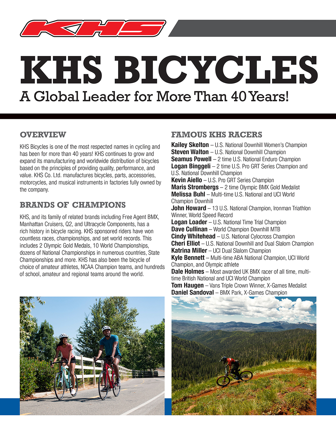Newman Grace was the agency on record for KHS Bicycles, acting as their complete outsourced marketing department, for more than 20 years. As a part of the team at Newman Grace for more than 15 years, I worked closely with KHS Bicycles on a wide range of projects from product catalogs, printed materials, digital graphics, product design, and more. I also worked directly with KHS Bicycles as their social media manager maintaining their online social media presence across Instagram, Facebook, and Twitter. I’ve worked with the KHS team to manage their social media presence since back in the days of Myspace! Additionally, as you’ll see on my resume, I launched an incredibly successful social media contingency program with for the professional teams/athletes to take part in and help promote the brands under their corporate umbrella.