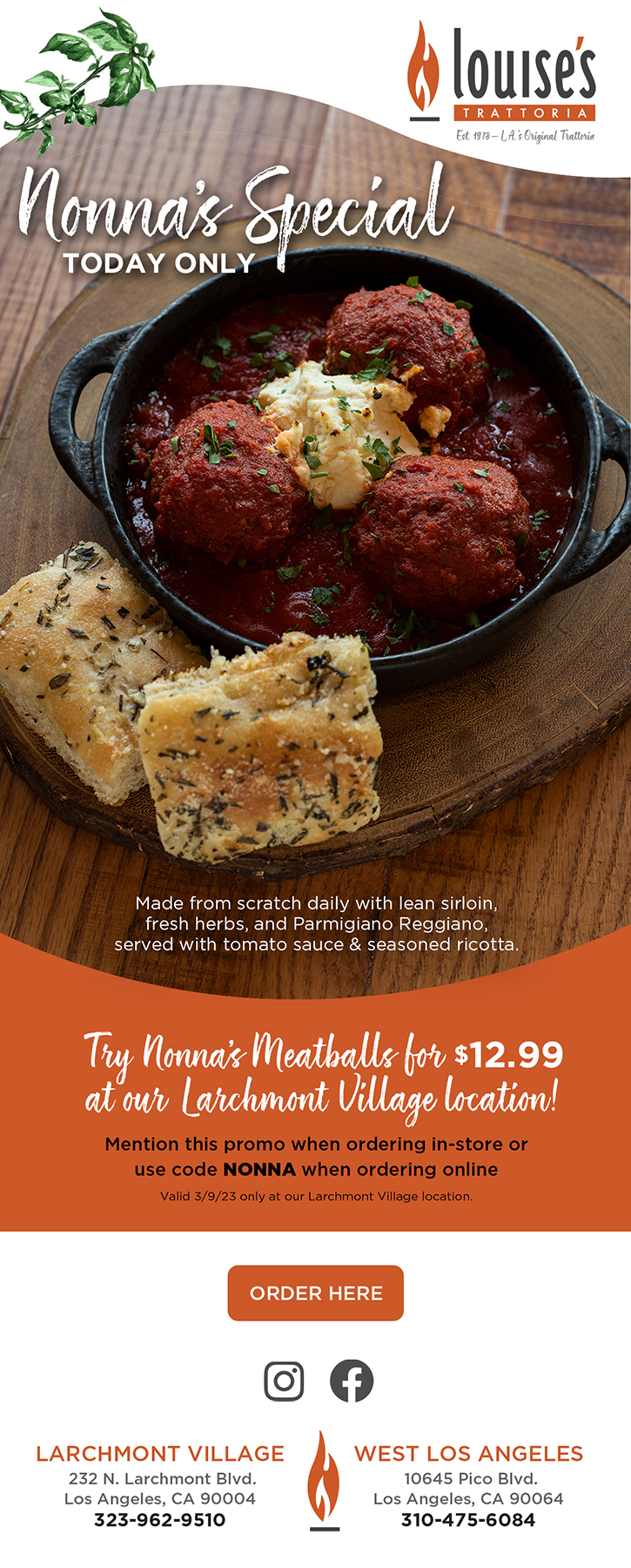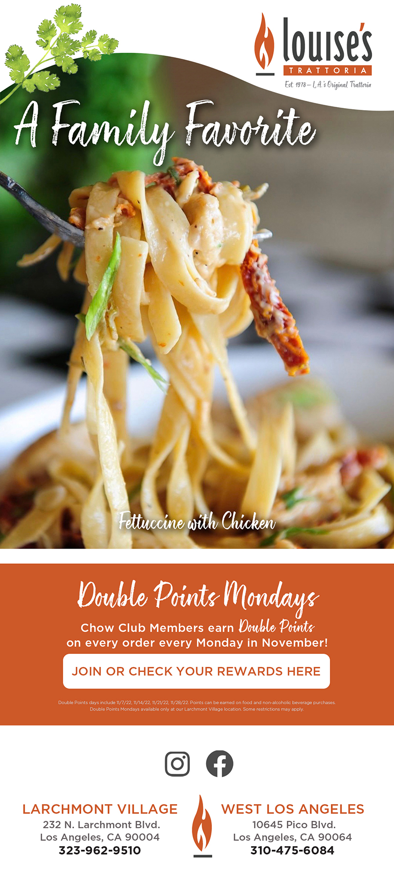 Louise’s Trattoria is a family-owned and operated Italian restaurant located in Los Angeles, CA since 1978.