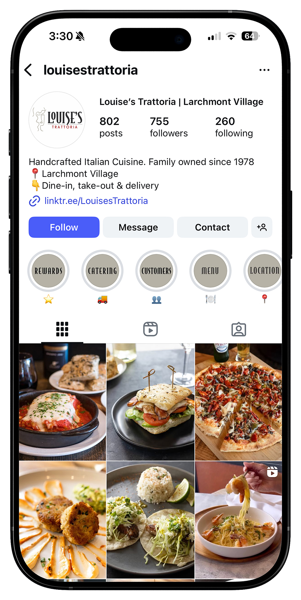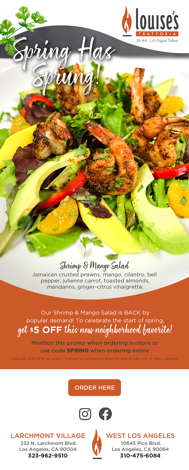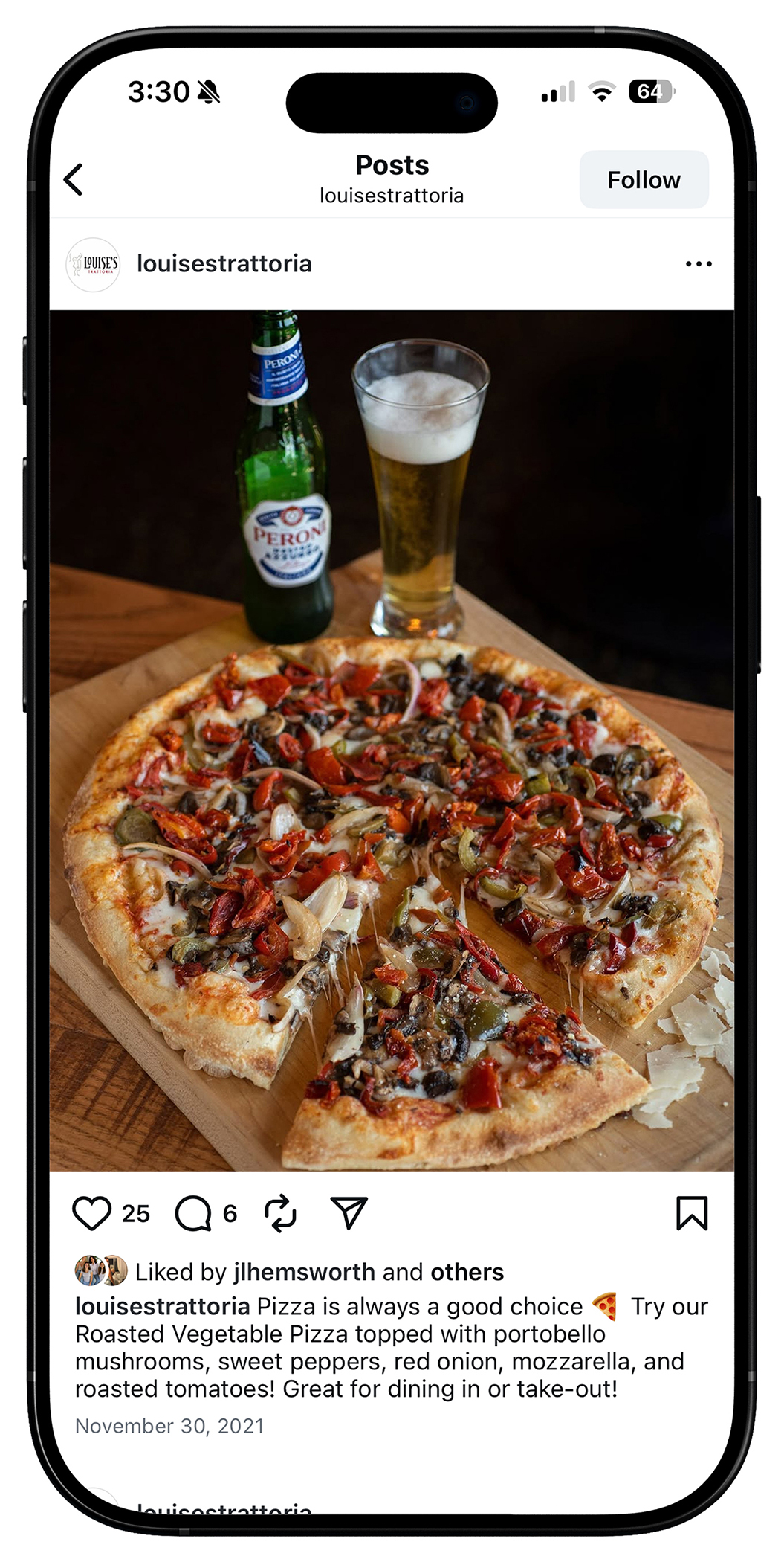 Newman Grace was the agency on record for Louise’s Trattoria, acting as their complete outsourced marketing department, for 4 years. I worked as part of the team at Newman Grace to manage Louise’s Trattoria’s social media, run social media ads, maintain and update their website, promotional strategy/copywriting/design of email campaigns, in-store promotional campaigns, and photographer sourcing and art direction.
